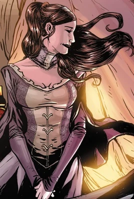 Ardee was born and raised in Angland with her brother Collem. Their mother died when they were young, and their father was an abusive alcoholic, often directed at his children, though regretting it afterwards. Her brother eventually escaped, leaving home to join the Union Army. This left Ardee to endure her father's violent outbursts alone. In her teens, she got pregnant and her father beat her so badly she had a miscarriage. She always dreamed that her brother would one day return and rescue her, but he never did. Her father finally dies, much to her relief, and Ardee pisses on his grave[2].