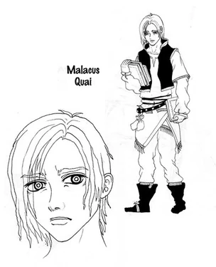 Malacus Quai is a pale, gaunt, sickly-looking young man with dark rings round his eyes. He has long hair and a nervous smile.[1]